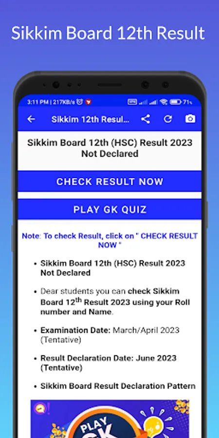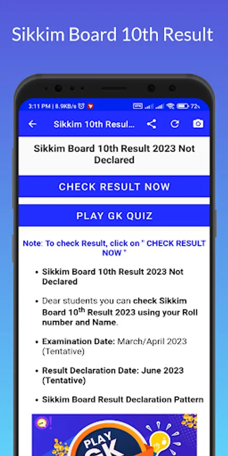 Disclaimer Note: Application is not a official app of Sikkim Board result. This app contains only the Web View system, in which we display the Website into app. So, If any error you face, regarding Sikkim Results 2023 Please contact to your respective ones or website Owner.