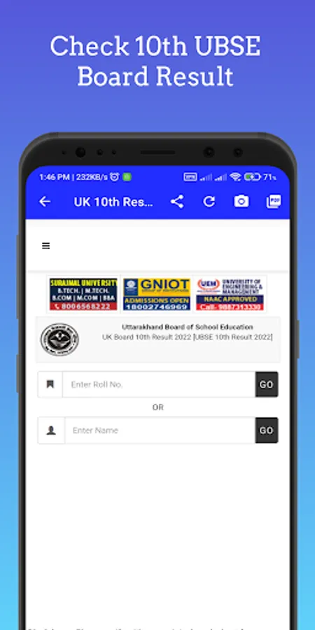Disclaimer Note: Application is not a official app of Uttarakhand Board result. This app contains only the Web View system, in which we display the Website into app. So, If any error you face, regarding Uttarakhand Results 2023 Please contact to your respective ones or website Owner.