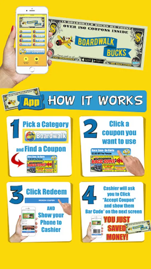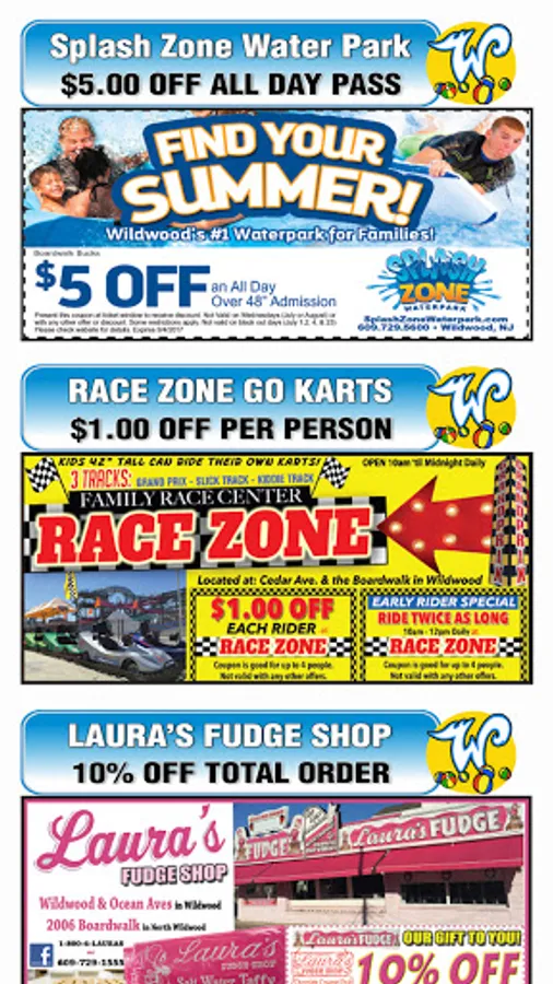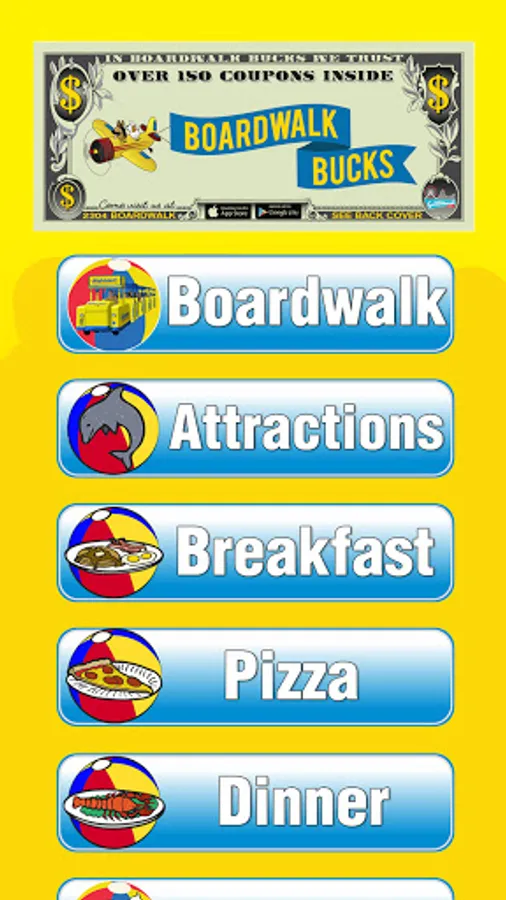 Download the Boardwalk Bucks app and have access to over 100 coupons for the Wildwoods, Cape May & Ocean City, NJ