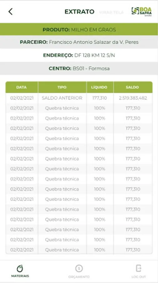 Through the application, the integrated producer Boa Safra Sementes will be able to consult the volumes of grain stored in the units. With the application it will be easier to manage all the stored stock, being possible to find information of available stocks in addition to the movement extracts.
