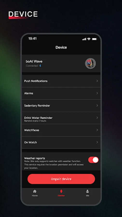 The boAt Bridge app connects a smartwatch device (Smart Watch) to your phone.