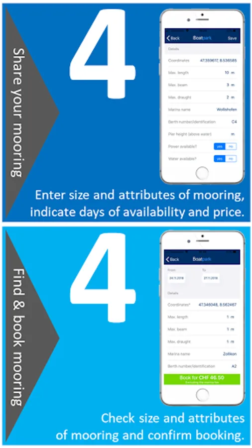 Boatpark is a sharing platform for boat moorings. This platform allows marinas and private mooring owners to enable temporary booking of their moorings at specified days and prices. Users can book the mooring via mobile app, at any time from any place without need to use radio, phone or e-Mail. Payment collection from users and reimbursement to mooring owner/marina is handled by Boatpark. Additional features are added to the booking app periodically.