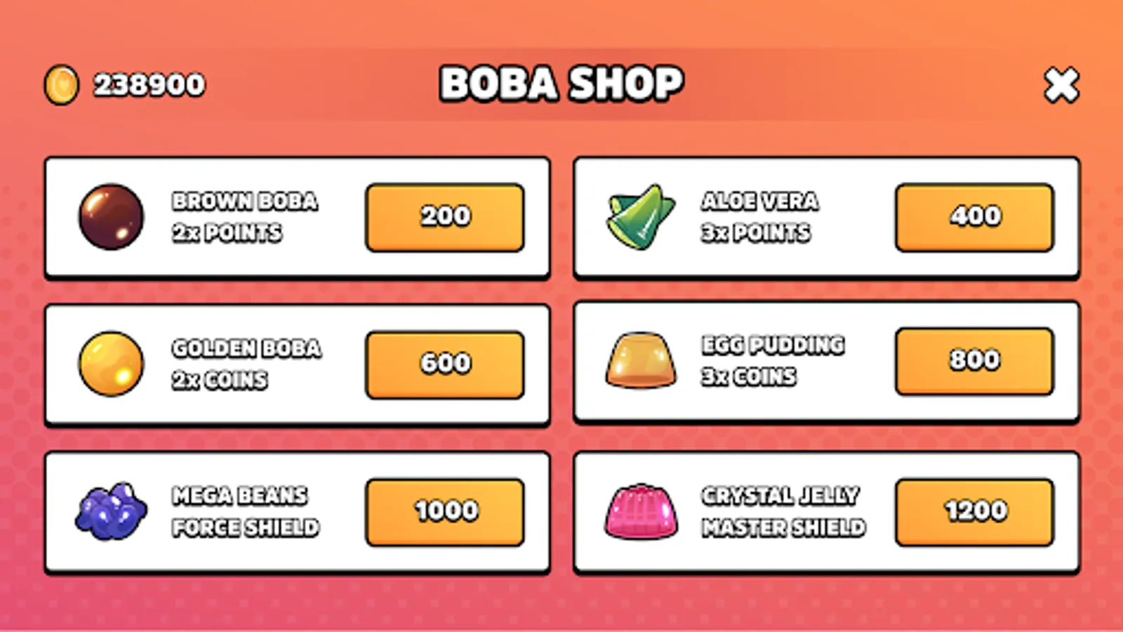 Boba Run is the 2D side-scrolling endless runner with challenging levels and unlockable milk tea characters. Increase your high score by purchasing boba toppings to power up Bubble Milk Tea.