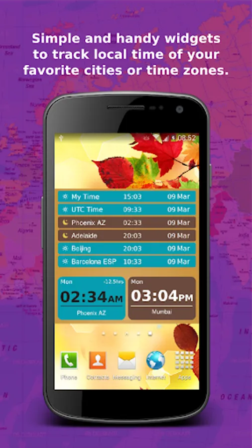 Just add your favorite cities/time-zones in a list and see the local time on different types of sleek widgets.