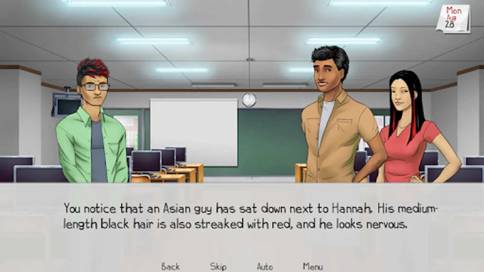 You will interact with a cast of characters, each with their own personality and stories, as you navigate college life, develop friendships, play board games, and come out. With luck, you might even find a boyfriend.