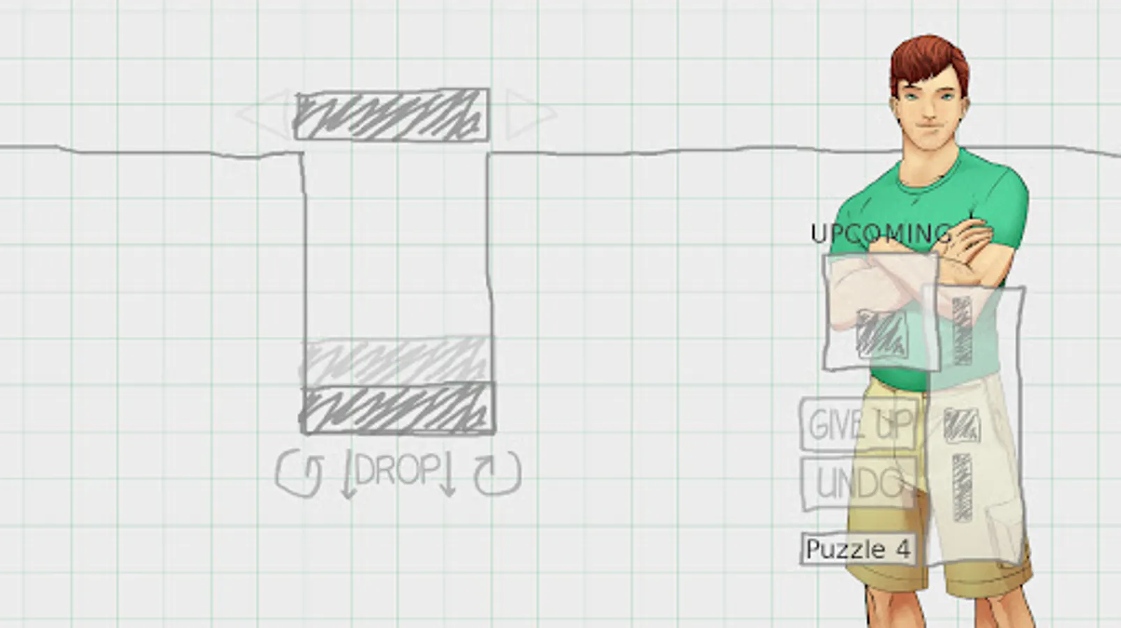 The puzzle minigame can be played without any prior knowledge of YAGS or its related games. It involves stacking Tetris-like blocks to fill the top row of a varying-sized grid. All puzzles are deterministic, non-timed, and infinitely replayable, and all moves can be undone as needed. It is intended to be a friendly spatial reasoning puzzle rather than a test of reflexes or quick thinking.
