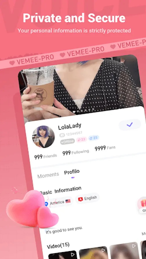 VeMee-Pro pays attention to user security and privacy. We take strict security measures to protect your personal information and encourage users to respect each other's privacy and courtesy. You can freely control the visibility of your personal information in the settings and report inappropriate behavior at any time.
