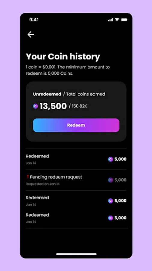 Redeem your earnings starting from $5 directly to your PayPal account.