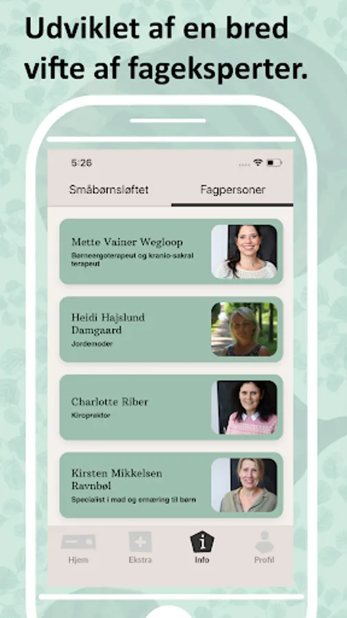 All content in the app has been developed by expert experts within midwifery science, health care, physio- and occupational therapy, psychology, nutrition science, sports science, brain research, children's chiropractic and research in movement and learning.