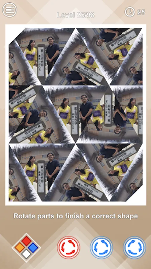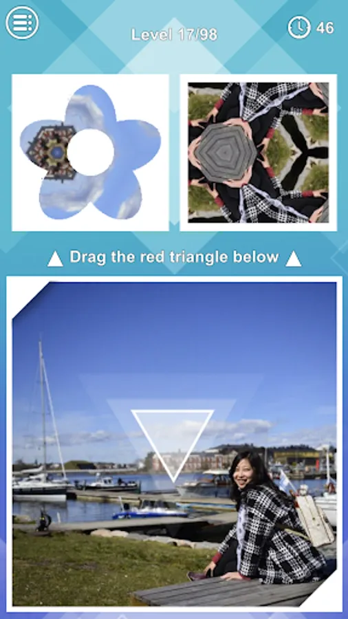 在每一关中,我们会提供给你一幅世界名画或者我们自己的带故事的照片,你需要拖拽红色三角来找到那个隐藏的位置,以让上面的两张万花筒图片相同。