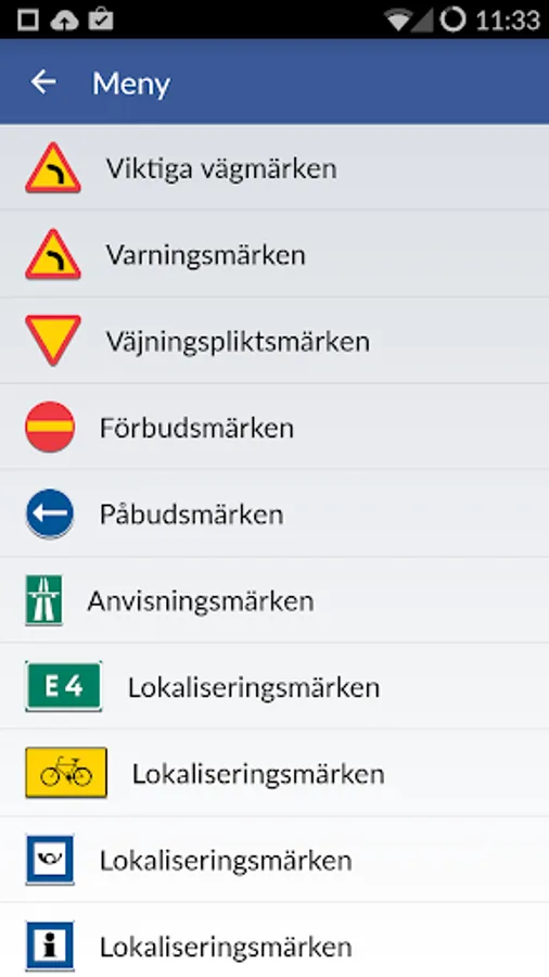 • An encyclopedia with all 558 road signs, signals, signs and road markings.