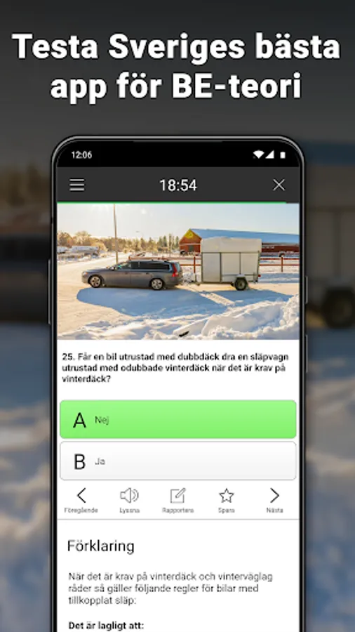 The driver's license questions and theory in iKörkort BE cover everything you need to know to pass the theory test for a car with a heavy trailer, and as soon as a law, traffic rule or road sign is introduced or changes, we update the app.