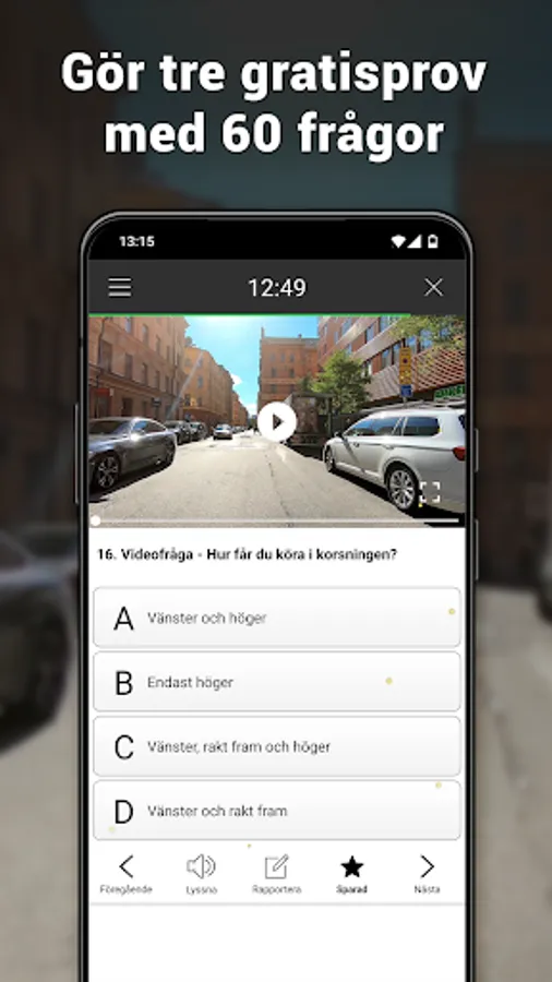 • 1,300 driver's license questions for MC with pictures and videos of real traffic situations.