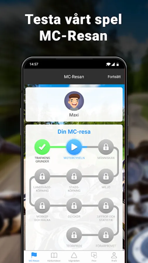 iKörkort MC makes studying for a driver's license easier and more fun and makes your path to the motorcycle license shorter and cheaper. Skip boring books and expensive theory lessons and play your way through driver's license theory instead - whenever you feel like it, wherever you are!