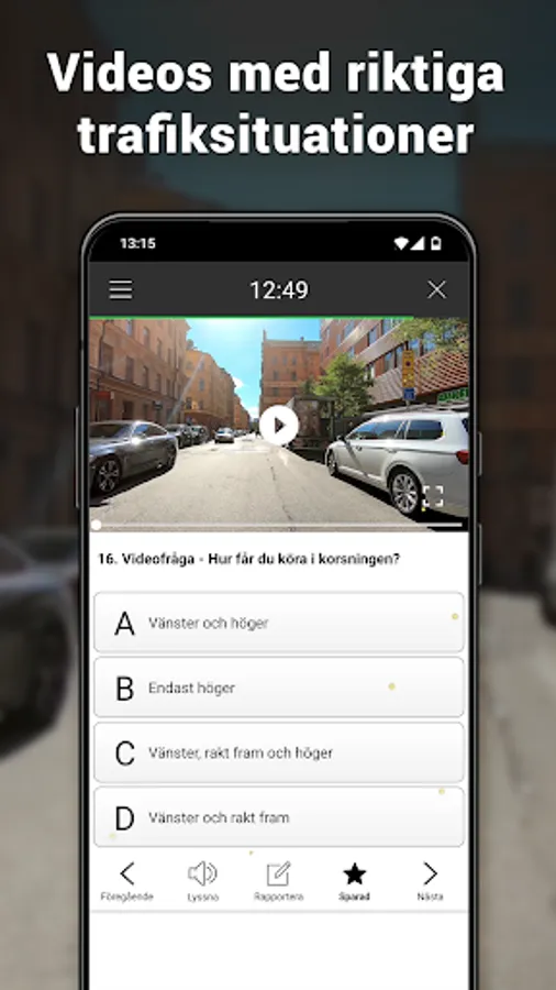 • 1,300 driver's license questions for MC with pictures and videos of real traffic situations.