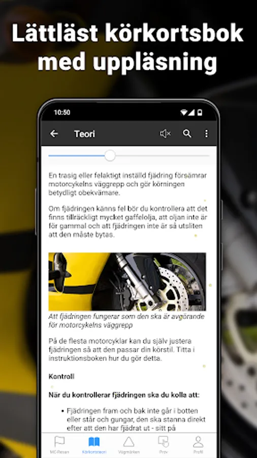 Buy iKörkort MC and pass the motorcycle theory test on the first try! Pay once and get access to the app forever - no monthly costs, no hidden fees, no advertising. iKörkort MC is updated for the theory test 2023 with the latest theory and the most important driver's license questions!