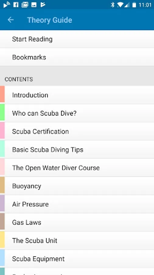 Scuba Exam keeps track of where you were when you last stopped reading, so that you can always continue from where you left off. You can also create bookmarks and search for paragraphs covering a particular topic, and even search for a word or phrase within each chapter.