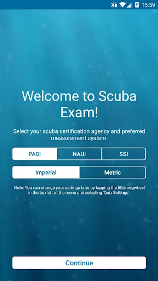 This application is for educational purposes only. It is in no way intended as a substitute for a real diving course. Before attempting any form of scuba diving you must complete training with, and receive a valid certification from, a recognized scuba diving organization.