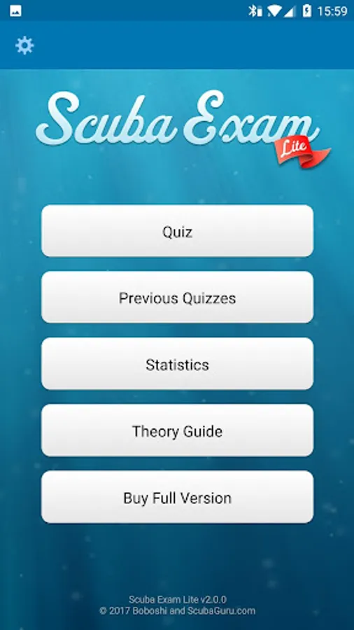Scuba Exam Lite contains all the features of the paid version of the app, but only a small part of the contents. If you like the interface and the sample questions and theory guide chapters, you can buy the full version for just $4.99.