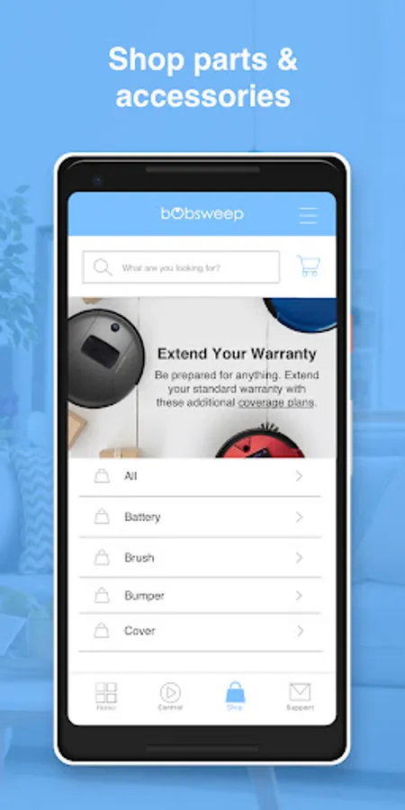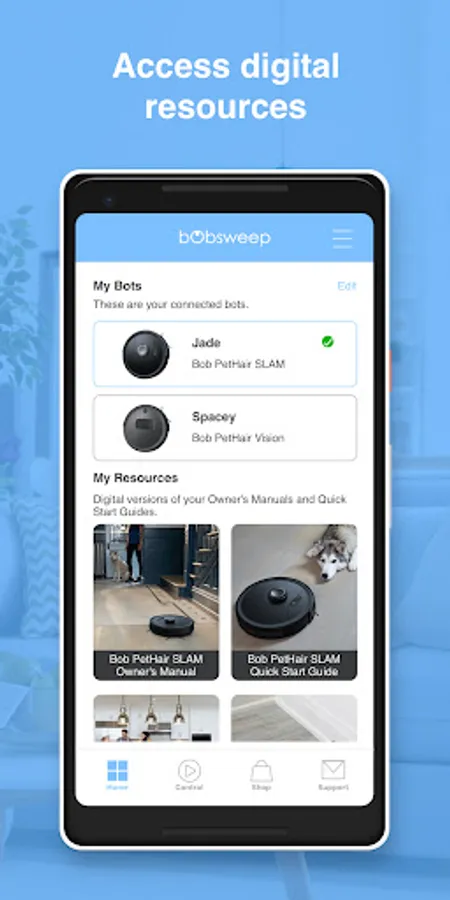 The control hub for your bObsweep bot. Control your bot, access digital resources, and shop for parts and accessories, all from one place.