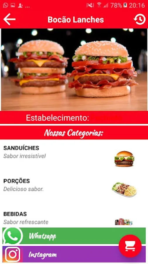 This application was developed exclusively to serve our customers and consumers of our delicious menu of snacks and portions of Bocão Lanches, the goal is to facilitate the order and consumption of our products through the application. With this type of automation, customers place their orders without the need to make calls or even go to the store, as well as the shopkeeper / bocão snacks discloses their products and services with ease, and their customers / consumers follow updates in real time. as well as: menus, banners, services and daily promotions through the delivery application.