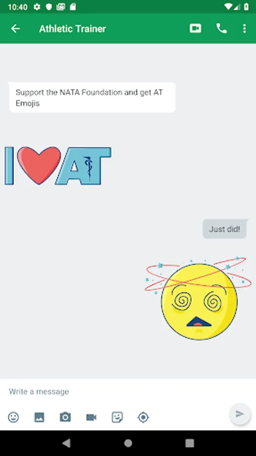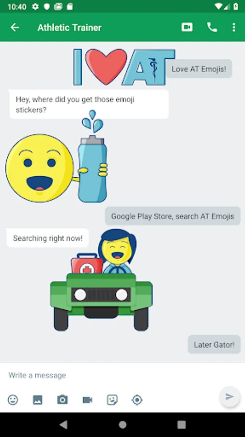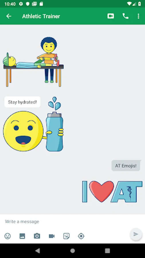 “I Heart AT” says it all. Our love of Athletic Trainers (ATs) and the athletic training profession was the inspiration for AT emojis. AT emojis is a sticker pack add-on for the Gboard app for Android™.