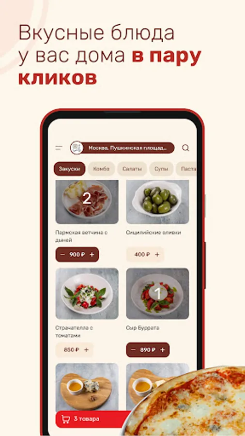 Appetizing pizza from a real wood-fired oven, as well as Italian appetizers and salads, pasta and risotto, meat and fish delicacies, in a word - everything that we know and love Bocconcino for, can now be ordered at home and in the office! Using our application, you can order your favorite pizza from Bocconcino anywhere, and for this it is not necessary to call the Delivery Service. At your service - a detailed illustrated menu with the possibility of ordering delivery or pickup.