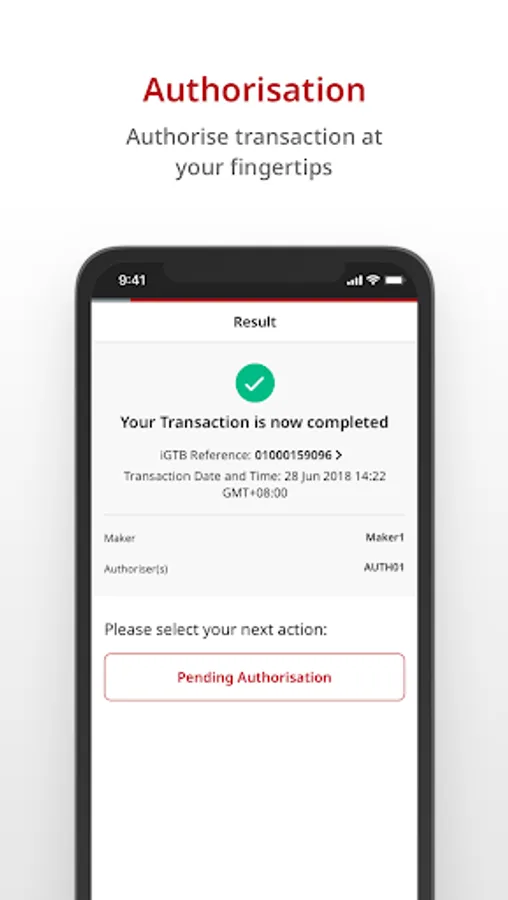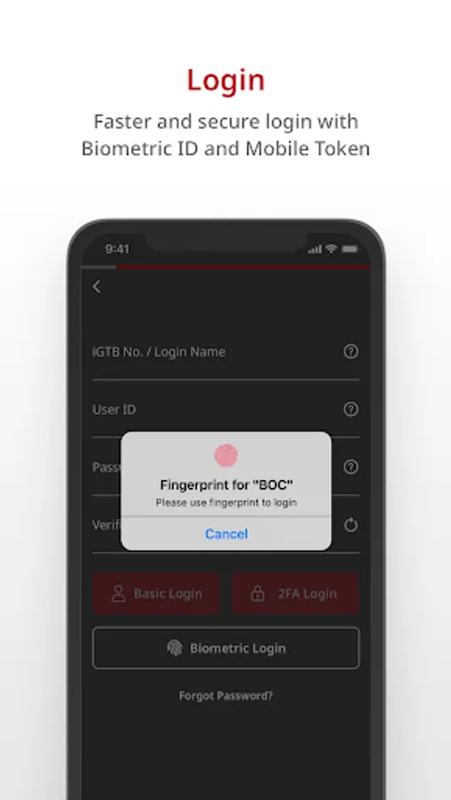 To protect your online transactions, please read the Bank's Security Information (including the precautions of using mobile applications: The Bank's website igtb.bochk.com > "Knowledge Centre" > Terms and Conditions For Corporate Electronic and Online Services).