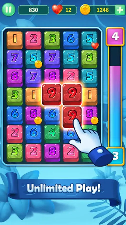 - Drag and move a number block to match 3 or more blocks in the same number.