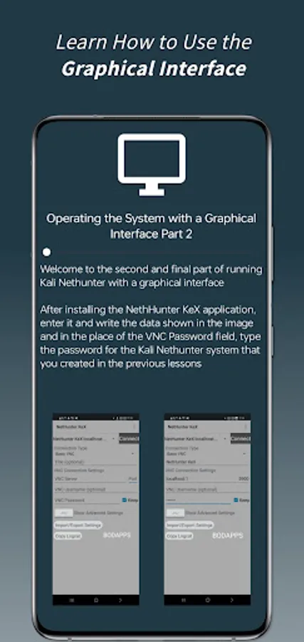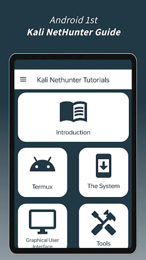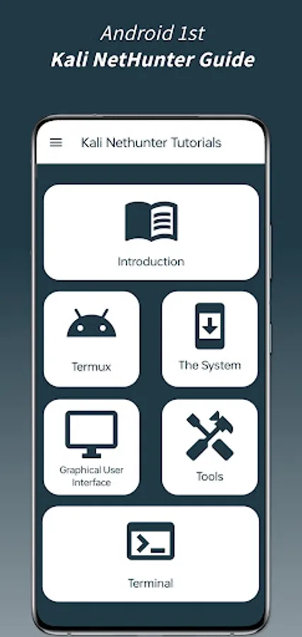 With Kali NetHunter Tutorials, you will learn how to install Kali NetHunter, the system’s basics, and how to use the graphical interface to operate the system, in addition to getting acquainted with the tools sections. The app is designed with a smooth and easy-to-use user interface that supports dark mode, and the lessons are arranged in a way that helps you understand all the basics of Kali NetHunter all the way to the mastery stage.