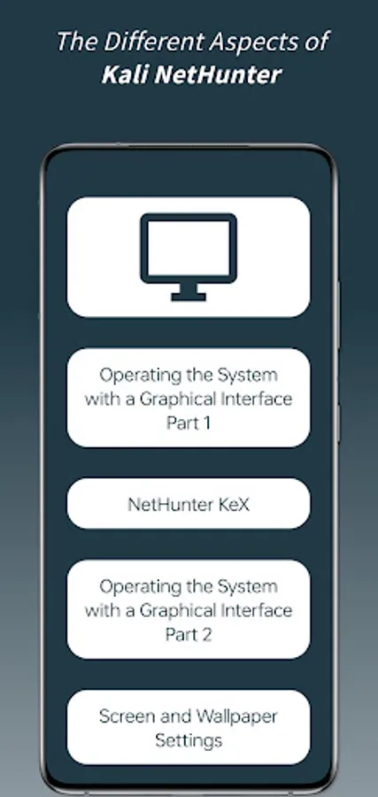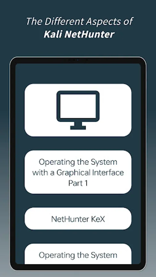 The lessons are organized into different sections within the app, which are constantly updated to keep up with developments on Kali NetHunter. These sections include: