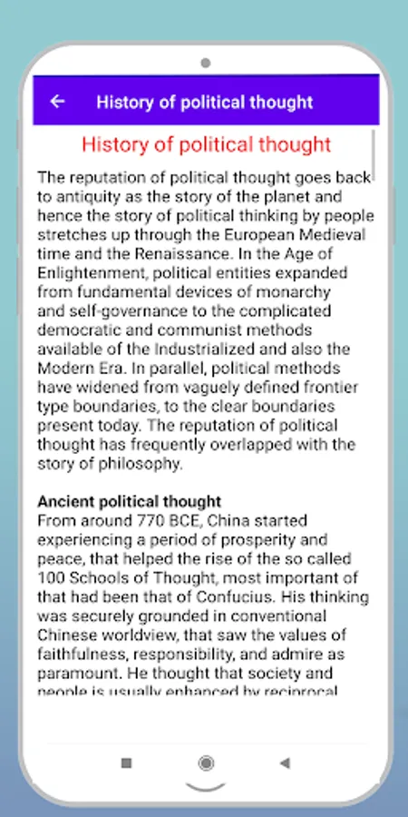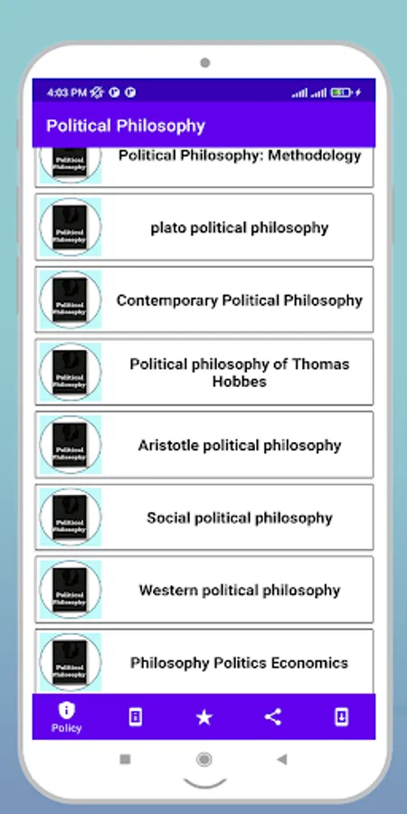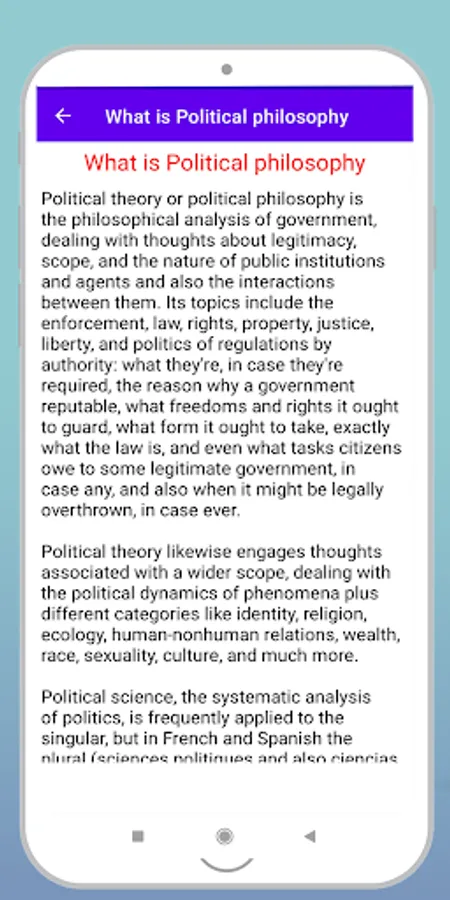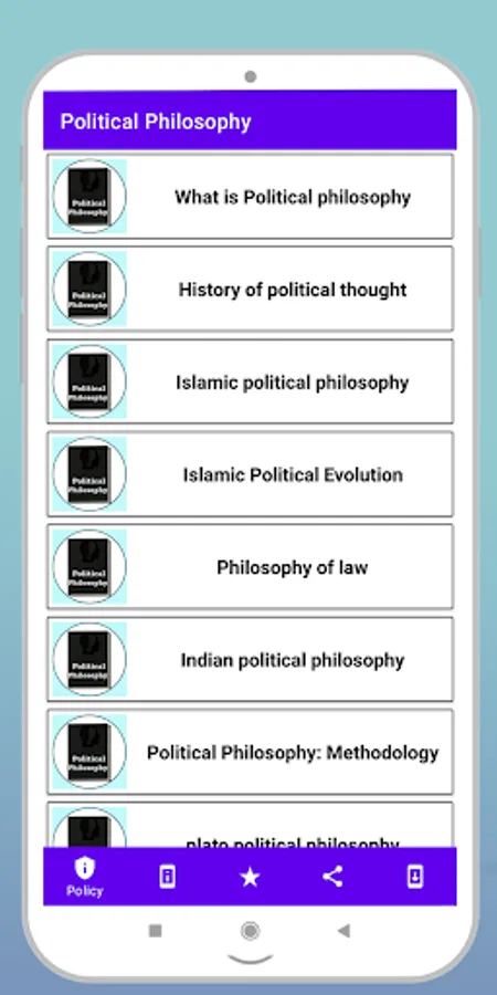 From this app you can know and learn about Political Philosophy. Get Political Philosophy Definition and History Theories. Political philosophy is a branch of philosophy. Islamic Political Evolution. I hope you can get a lot of knowledge about political philosophy from this app.