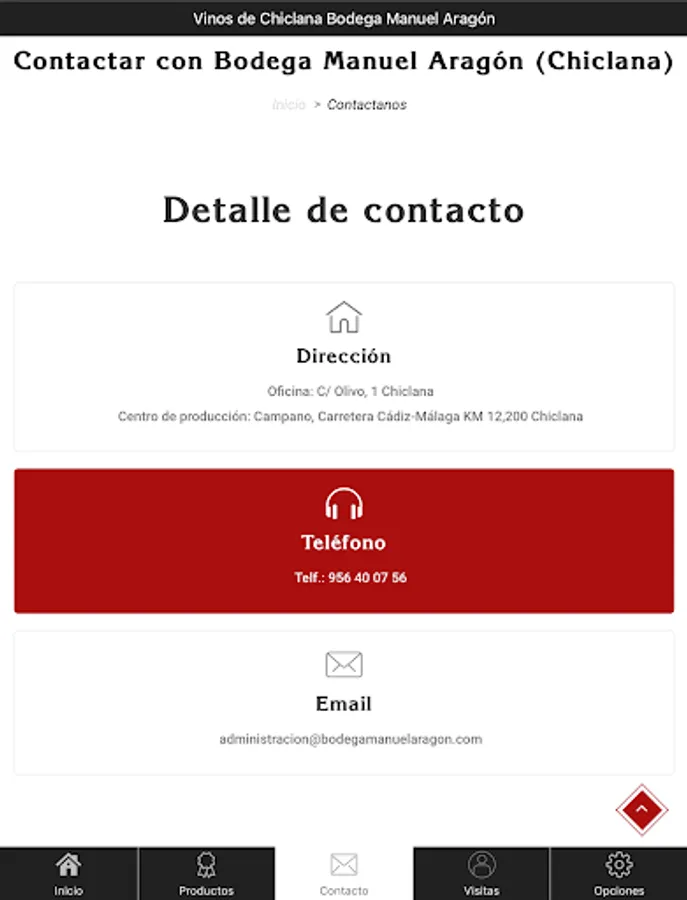 We offer our products. The dedication of our expert viticulturist, Juan Manuel Tocino and the skill and experience of our winemaker has resulted in the production of these highly appreciated wines that we make available to you through this App.