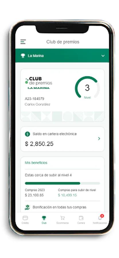 Download La Marina Wallet to live a personalized shopping experience from your mobile device. We have the best brands in clothing, footwear, appliances, electronics and much more.