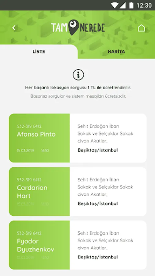 NOTE: TamWhere service is a service with free subscription but it is connected to Turkcell infrastructure. For information on application usage and subscription fees, please visit http://www.tamnerede.com/what/.