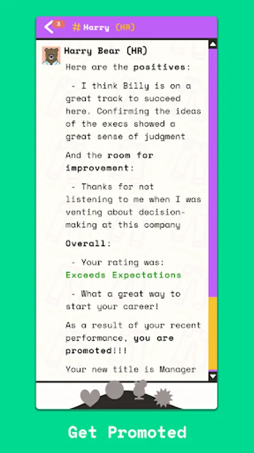 Meaningful choices: The choices impact the story, how people perceive you, and whether you get promoted or not. Unwind and have a little fun with two hours of hilarious decisions and dialogue in this emoji-driven branching narrative.