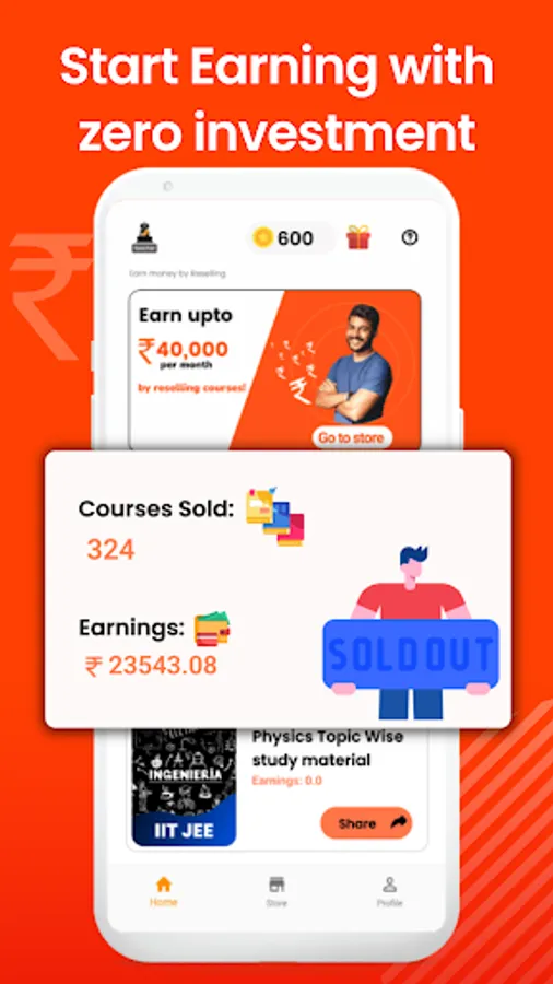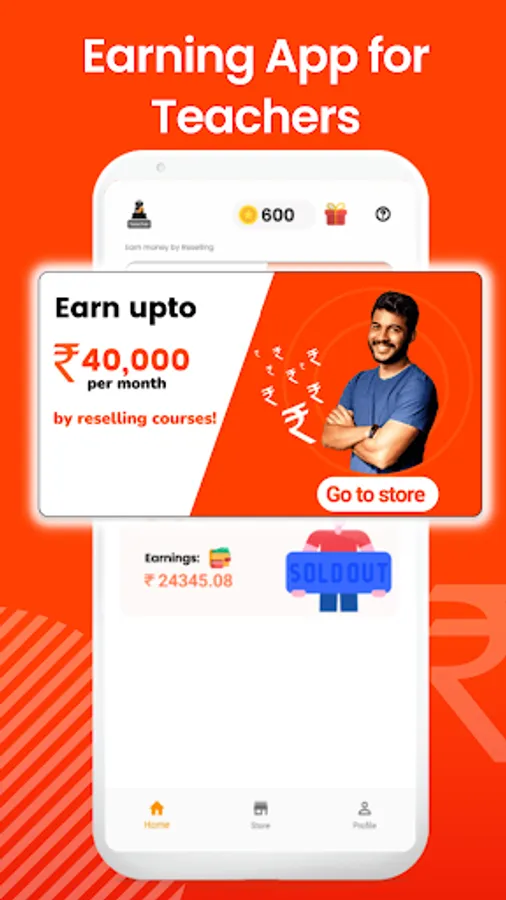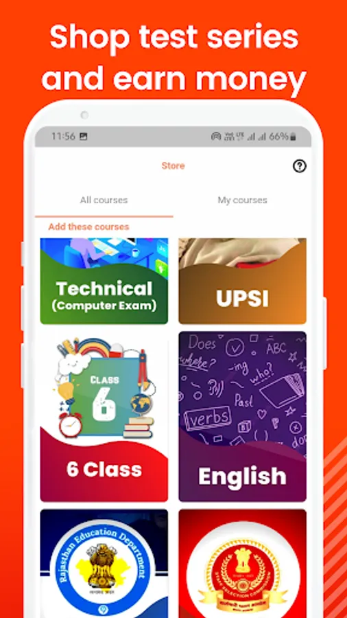 1. Go to the store- Sign up on Teacher App, go to the store and browse through the list of popular competitive exam (SSC, Railways, Banking) courses, IIT and NEET, Class 6th to 12th for selling.