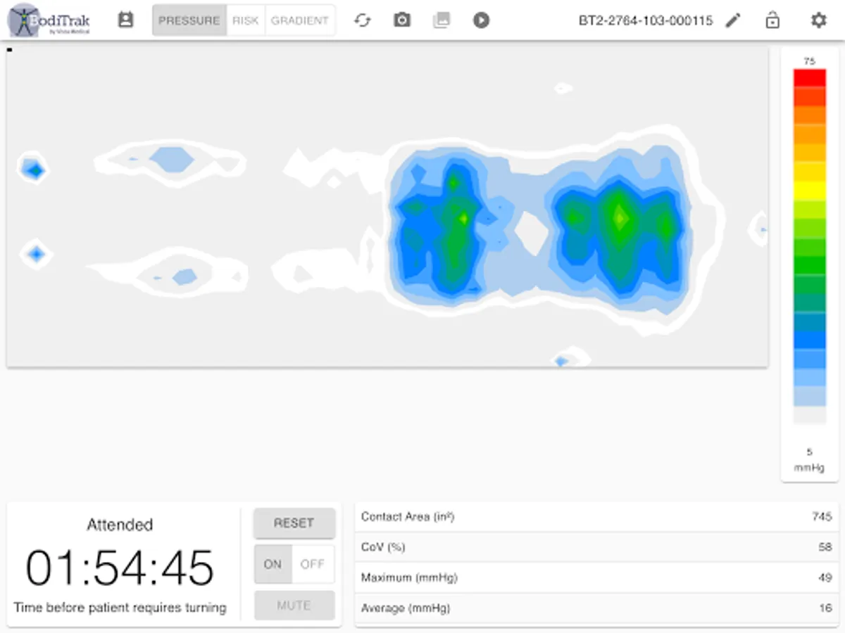 Using a BodiTrak Bed Monitor with a Dataport allows a user to easily access Risk and Gradient information. The software also includes a timer option with selectable time periods. The Bed Monitor provides the patient or caregiver with essential information for improving patient care and reducing the expense of healing wounds.