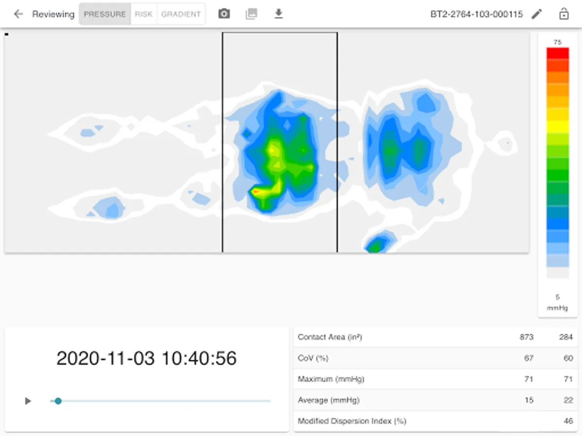 BodiTrak Bed Monitor is an easy to use, stretchable, pressure and shear monitoring system that is applied on top of a bed surface. It assists in identifying and managing areas on a patients skin where they may be experiencing high pressures and shear forces. It is a powerful tool to help prevent tissue trauma, increase patient comfort, monitor support surface performance, and educate both clients and caregivers.