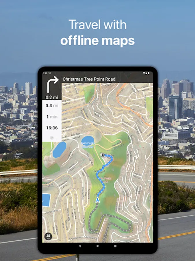 • Automatic rerouting gets you back along your way, even offline.