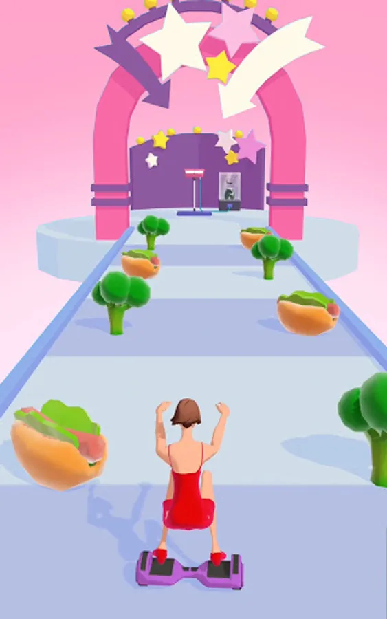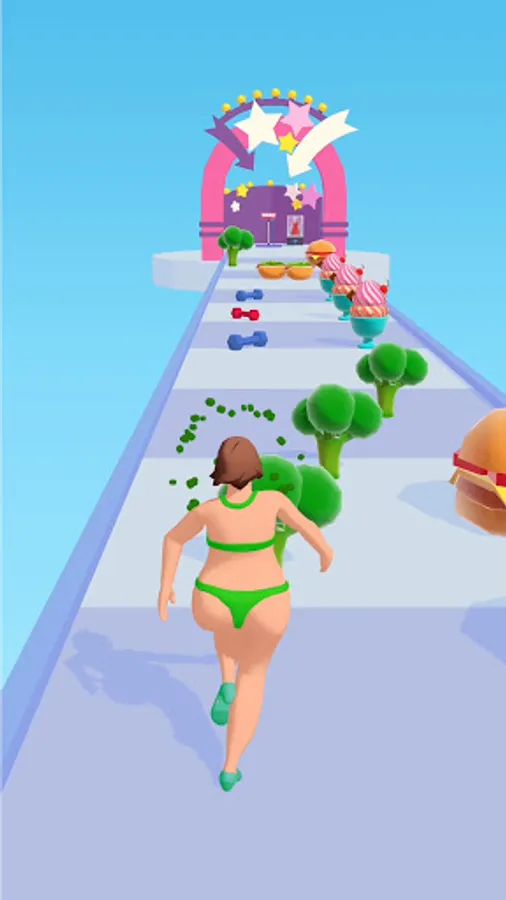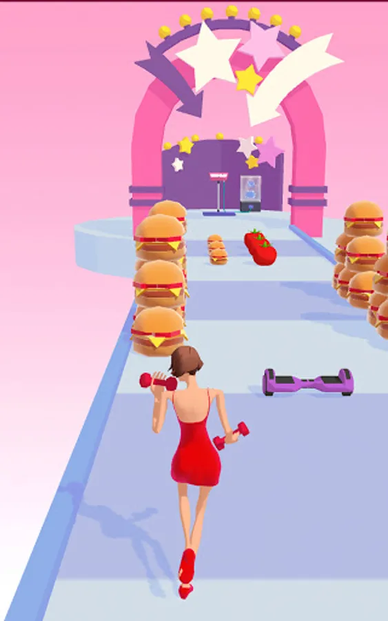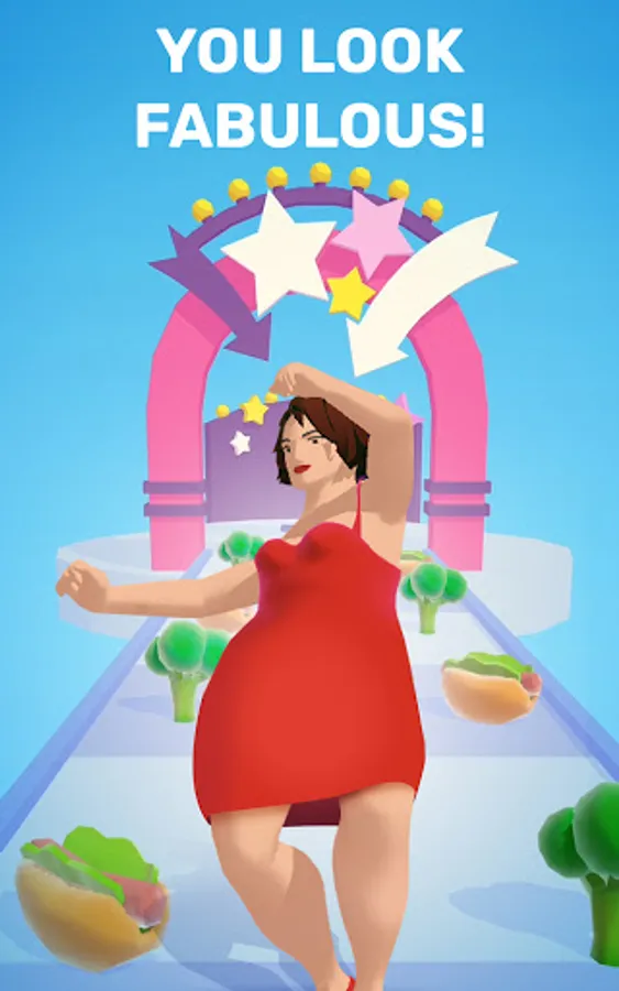 But, along the way, you'll be met by various obstacles: various food and fitness gear. Catch the ones that help you hit the target and win beautiful outfits.
