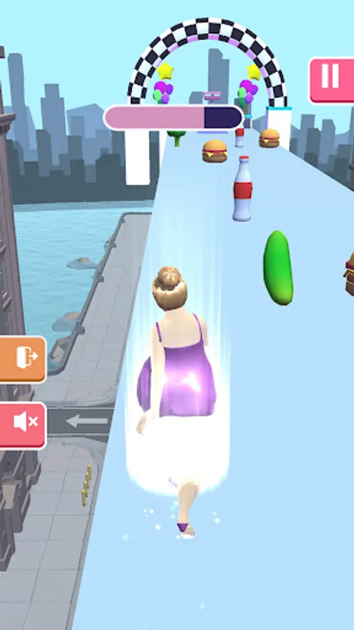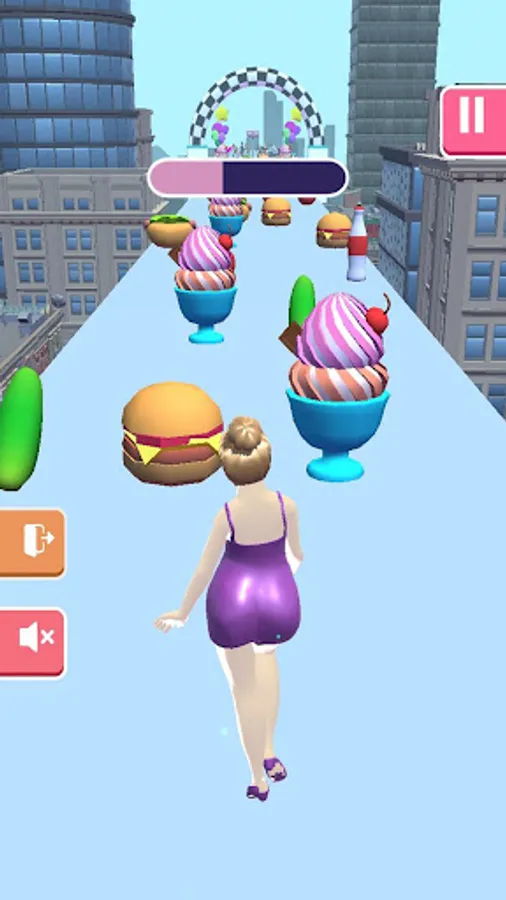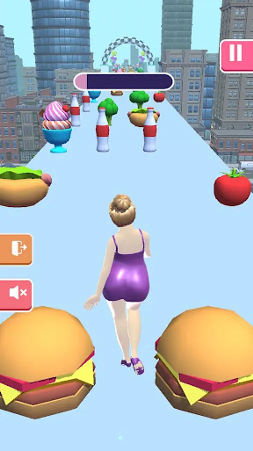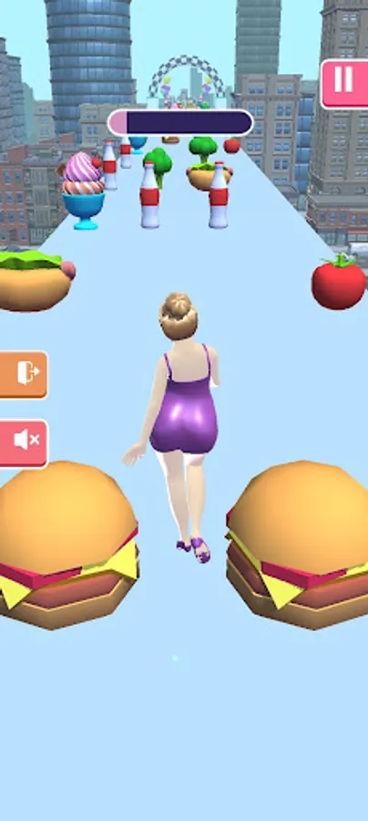 You pick up objects and decide whether to become the thin and slim girl or the fat girl on each level. You can choose from a variety of items along the road, including ice cream, hamburgers, cucumbers, and vegetables. You'll make life choices by choosing to eat fast food or nutritious healthy foods on the Run for Health track. If you eat too much fast food like hamburgers and burgers, you will get fat or even obese, It will make you bigger and bigger.