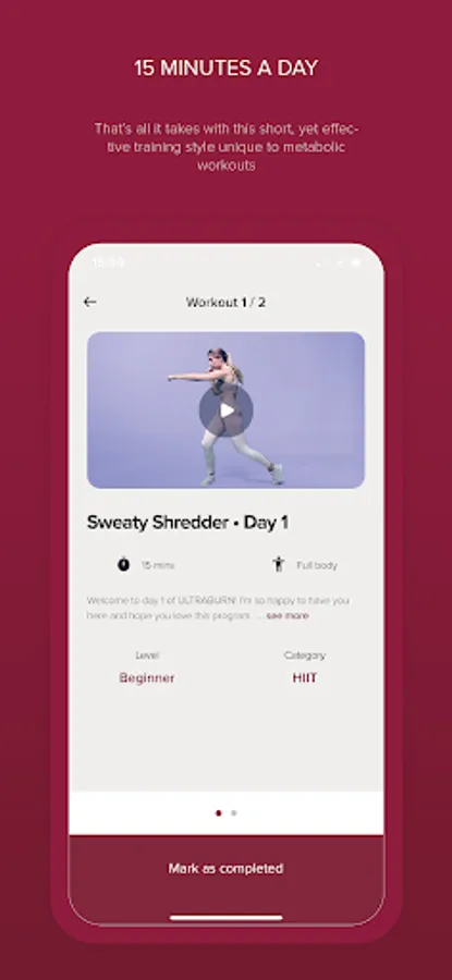 In this fitness app, you can stream 15-minute metabolic workouts and follow along in real-time. Includes personalized progress tracking and diverse workout routines.