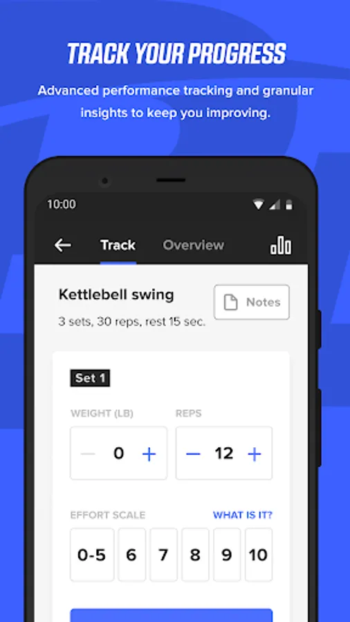 • Fitness tracker: Record your number of reps, sets, and the difficulty level of a workout. With clear data points, you get to see your performance improve over time and understand the levers for real performance impact.