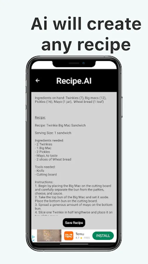 Whether you're a cooking novice, a culinary genius, or just looking for a good laugh in the kitchen, Recipe.ai is your go-to app. Download now and transform your cooking experience into a delightful adventure!