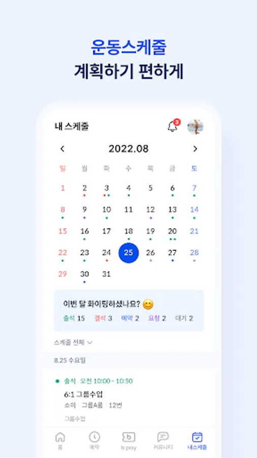 In addition, you can easily manage and approve trainers and PT classes, share exercise secrets through the community, and check your information at a glance so you can enjoy a more enjoyable and energetic lifestyle.