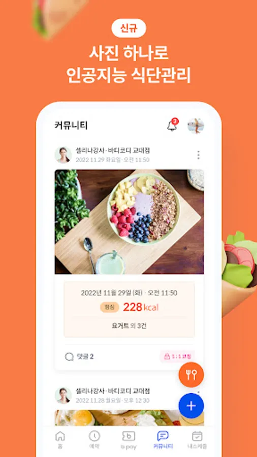Smartly with artificial intelligence, just take a picture of food, and the calories are automatically analyzed and delivered to the PT instructor, so you can systematically diet and manage your diet.