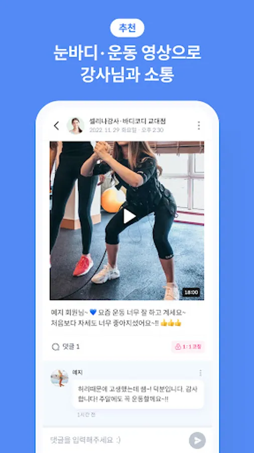 Body Coordination member store instructors become kind exercise mates and upload short-form videos of your body type and exercise, so you can enjoy exercising more healthily.