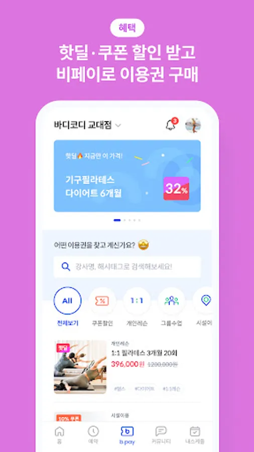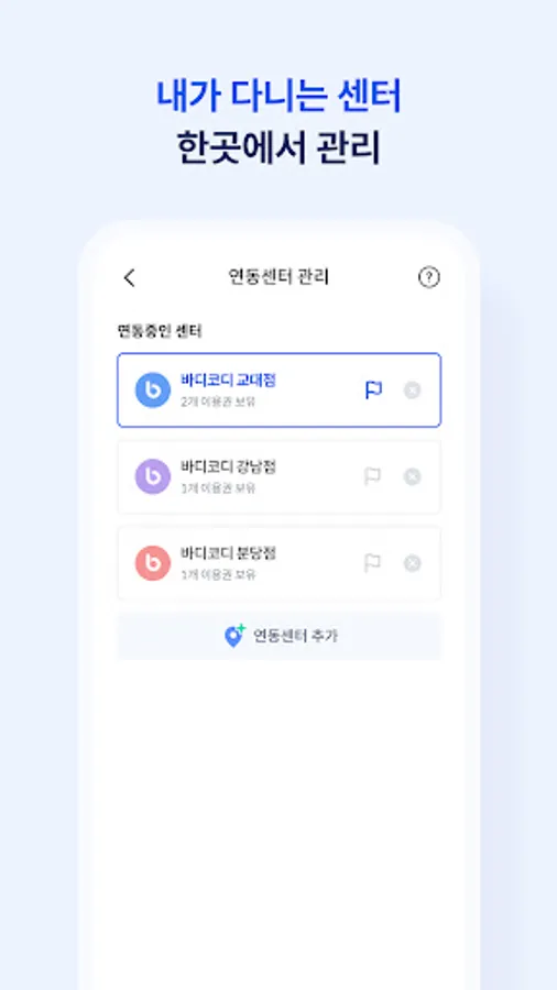 Korea's No. 1 fitness management service, Body Coordinator, is a program selected from famous national gyms, fitness centers, golf driving ranges, Pilates, yoga studios, and PT gyms.