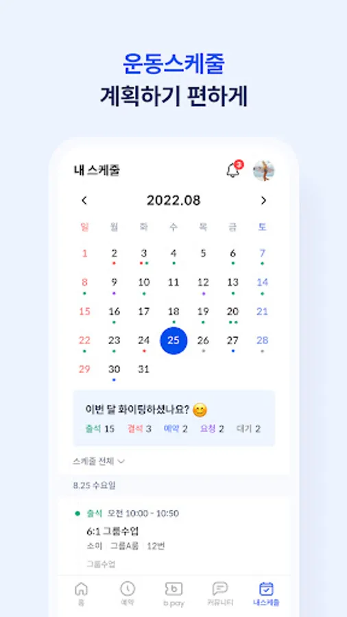 - Members using Ilgram Fitness can inquire at any time through the scheduler which service they used at the center, and can check the remaining period or number of times of the center pass.